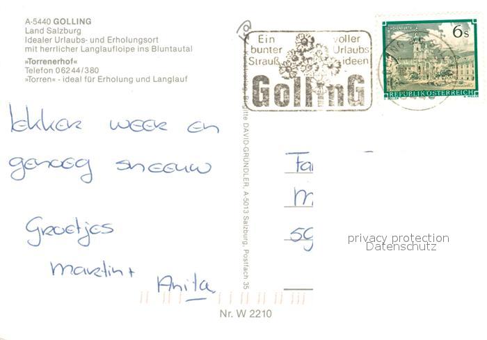73591060 alte Postkarte Golling Salzach Bluntautal Kirche Torrenerhof postalisch gelaufen Erhaltung siehe scans [KathaD81] KatCode: 11390323050204
