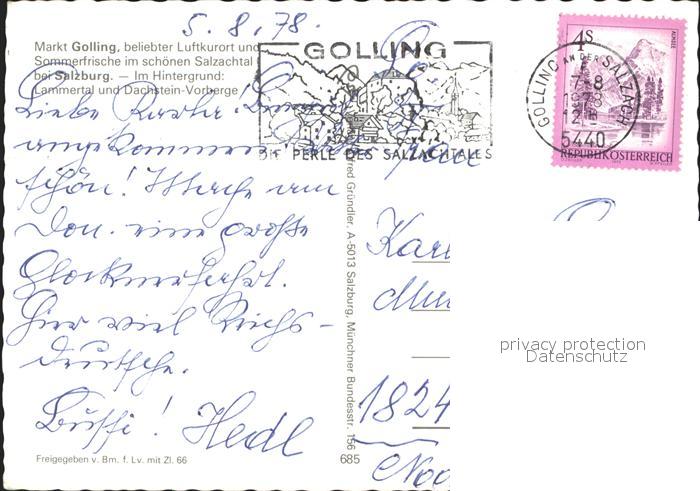 72238886 alte Postkarte Golling Salzach Fliegeraufnahme postalisch gelaufen Erhaltung siehe scans KatCode: 11390323050204