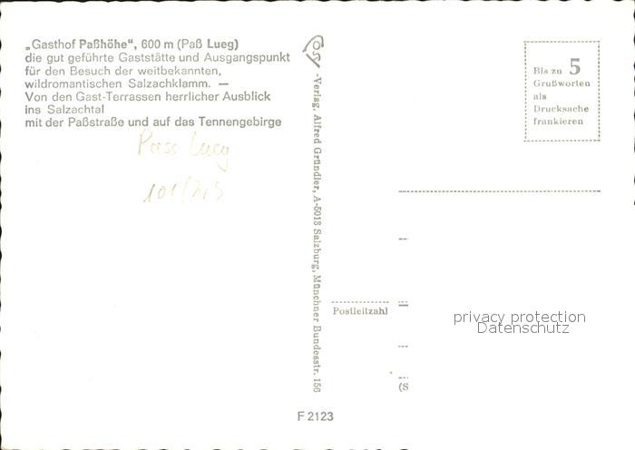 72494998 Golling Salzach Gasthof Passhoehe postalisch nicht gelaufen Erhaltung siehe scans KatCode: 11390323050204
