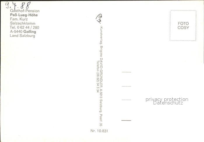 72257361 Golling Salzach Gasthof Pension Pass-Lueg-Hoehe postalisch nicht gelaufen Erhaltung siehe scans KatCode: 11390323050204