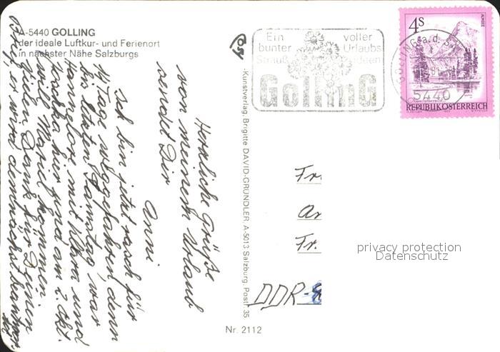 72375460 alte Postkarte Golling Salzach Hauptstrasse Kirche Luftkurort postalisch gelaufen Erhaltung siehe scans KatCode: 11390323050204