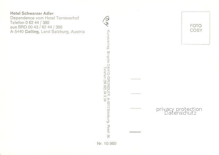12990063 Golling Salzach Hotel Schwarzer Adler postalisch nicht gelaufen Erhaltung siehe scans [NatalD47] KatCode: 11390323050204