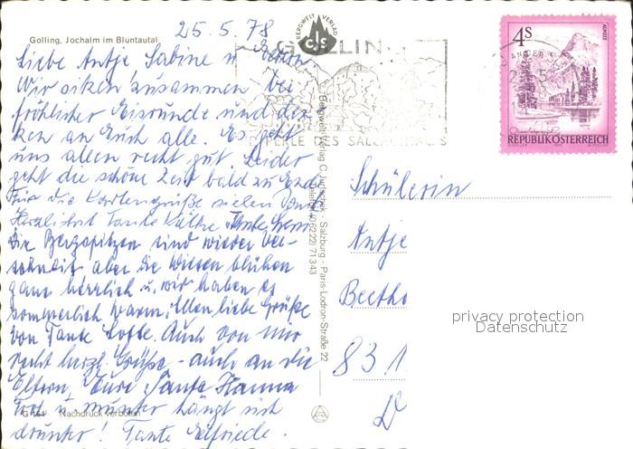72293298 alte Postkarte Golling Salzach Jochalm Bluntautal postalisch gelaufen Erhaltung siehe scans KatCode: 11390323050204