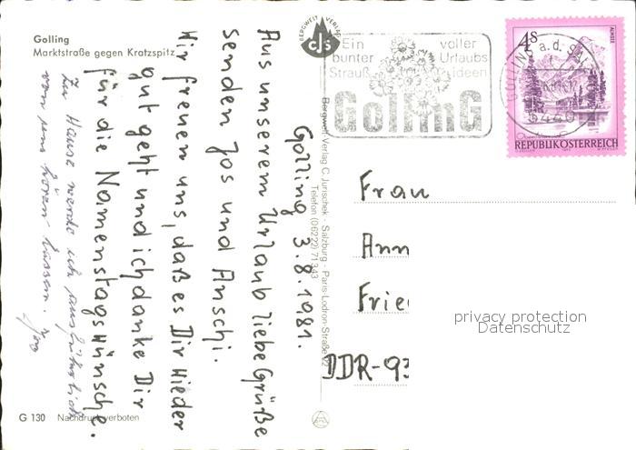 12379536 alte Postkarte Golling Salzach Marktstrasse mit Kratzspitz postalisch gelaufen Erhaltung siehe scans KatCode: 11390323050204