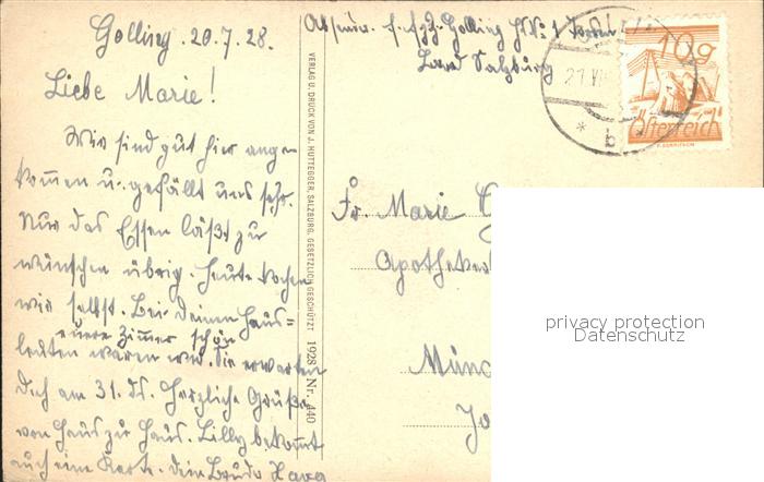 72167513 alte Postkarte Golling Salzach mit Tennengebirge postalisch gelaufen Erhaltung siehe scans KatCode: 11390323050204