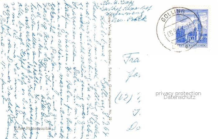 72770247 alte Postkarte Golling Salzach Panorama Luftkurort mit Dachsteingebirge postalisch gelaufen Erhaltung siehe scans [FriedD77] KatCode: 11390323050204