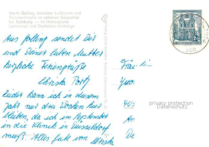 73166531 alte Postkarte Golling Salzach Salzachtal mit Lammertal und Dachstein Vorberge Fliegeraufnahme postalisch gelaufen Erhaltung siehe scans [FriedD77] KatCode: 11390323050204