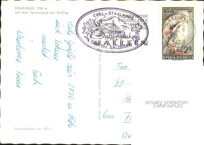 72411466 alte Postkarte Golling Salzach Stahlhaus auf dem Torrenerjoch postalisch gelaufen Erhaltung siehe scans KatCode: 11390323050204