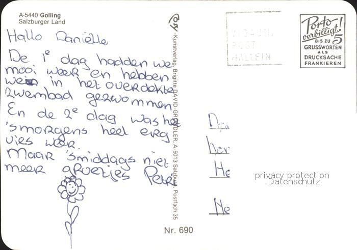 72269517 alte Postkarte Golling Salzach Teilansichten Kirche Brunnen Kind Haflinger postalisch gelaufen Erhaltung siehe scans KatCode: 11390323050204