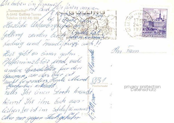12603816 alte Postkarte Golling Salzach Torrenhof postalisch gelaufen Erhaltung siehe scans [LiesaD40] KatCode: 11390323050204