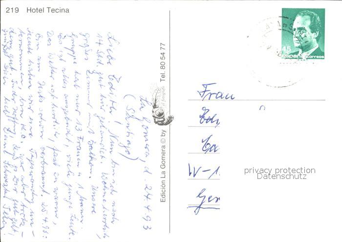 old postcard Gomera La Hotel Tecina postalisch gelaufen Erhaltung siehe scans