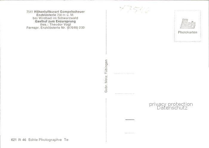 41775489 Gompelscheuer Gasthof zum Enzursprung postalisch nicht gelaufen Erhaltung siehe scans KatCode: 11110008235025