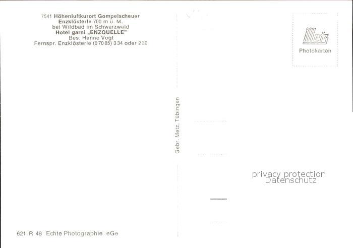 41775491 Gompelscheuer Hotel garni Enzquelle postalisch nicht gelaufen Erhaltung siehe scans KatCode: 11110008235025