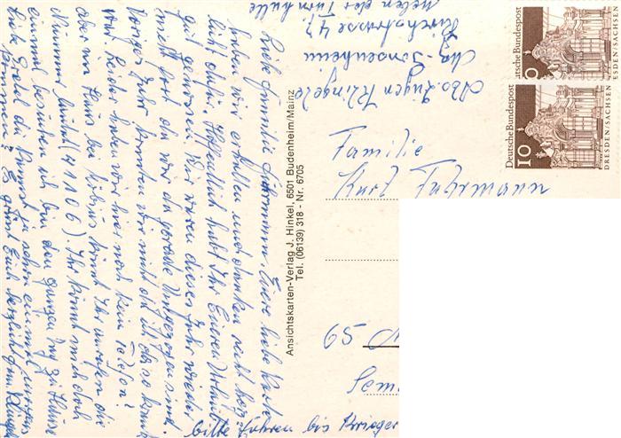 73878893 alte Postkarte Gonsenheim Altersheim der AWO Breite Strasse und ev Kirche Christus Kirche postalisch gelaufen Erhaltung siehe scans [FriedD77] KatCode: 11110007315000