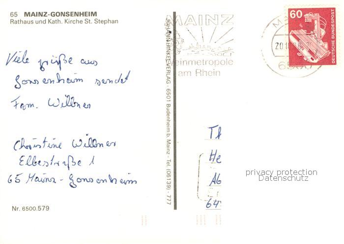 73204446 alte Postkarte Gonsenheim Rathaus Katholische Kirche St Stephan postalisch gelaufen Erhaltung siehe scans [FriedD77] KatCode: 11110007315000