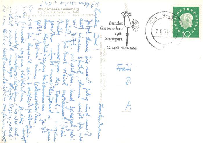 73888011 alte Postkarte Gonsenheim Waldschenke Lenneberg Terrasse postalisch gelaufen Erhaltung siehe scans [WerneD78] KatCode: 11110007315000