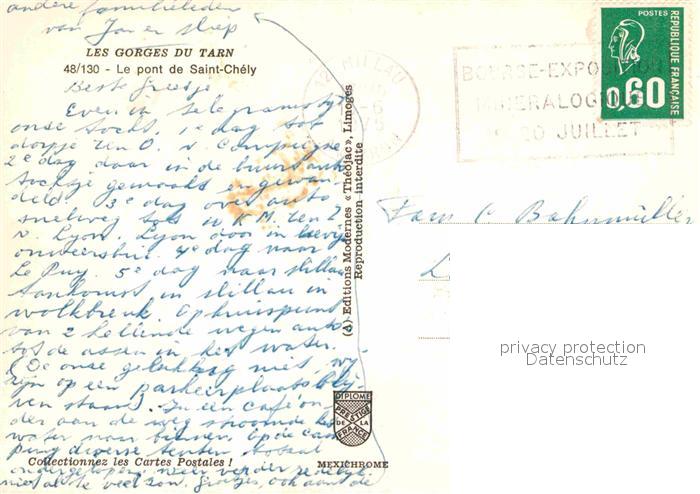12687159 carte postale Gorges du Tarn Le pont de Saint Chely postalisch gelaufen Erhaltung siehe scans [WerneD78] KatCode: 11170048148131