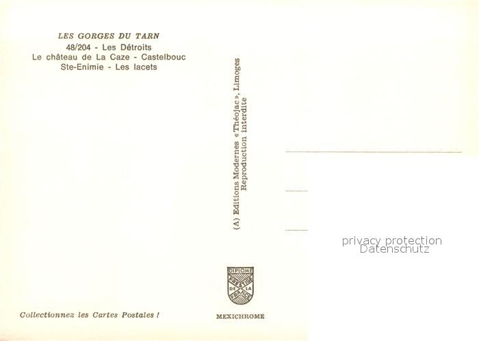 13151911 Gorges du Tarn Ste Enimie Chateau La Caze postalisch nicht gelaufen Erhaltung siehe scans [KathaD81] KatCode: 11170048148131