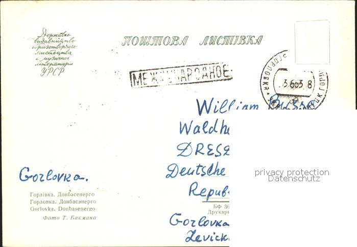 old postcard Gorlovka Donbasenergo postalisch gelaufen Erhaltung siehe scans