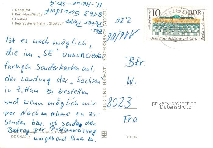 73750977 alte Postkarte Gornsdorf Panorama Karl Marx Strasse Freibad Betriebsferienheim Glueckauf postalisch gelaufen Erhaltung siehe scans [WerneD78] KatCode: 11110014188090