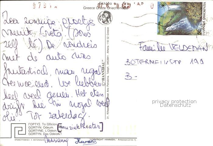 old postcard Gortyn Gortys Crete Odeion postalisch gelaufen Erhaltung siehe scans