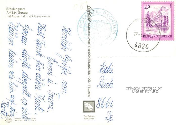 73046460 alte Postkarte Gosau Oberoesterreich Fliegeraufnahme Tal Panorama Gosaukamm postalisch gelaufen Erhaltung siehe scans [KathaD81] KatCode: 11390315040706