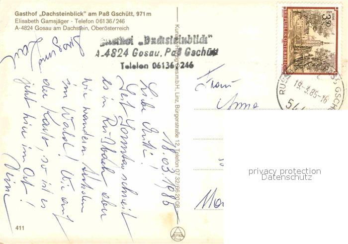 72673276 alte Postkarte Gosau Oberoesterreich Gasthof Dachsteinblick am Pass Gschuett postalisch gelaufen Erhaltung siehe scans [WerneD78] KatCode: 11390315040706