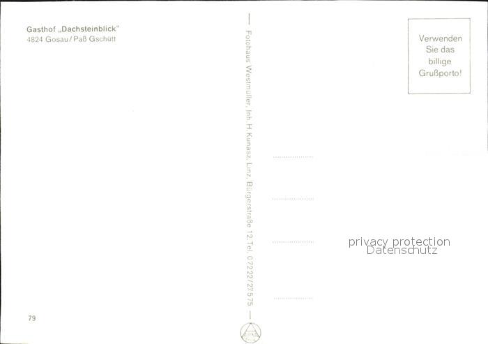 72495930 Gosau Oberoesterreich Gasthof Dachsteinblick Pass Gschuett postalisch nicht gelaufen Erhaltung siehe scans KatCode: 11390315040706