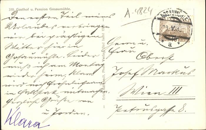 41314789 Gosau Oberoesterreich Gasthof Gosaumuehle postalisch gelaufen gute Erhaltung Alte Ansichtskarte Postkarte alte Postkarte hz_W Katcode 11390315040706