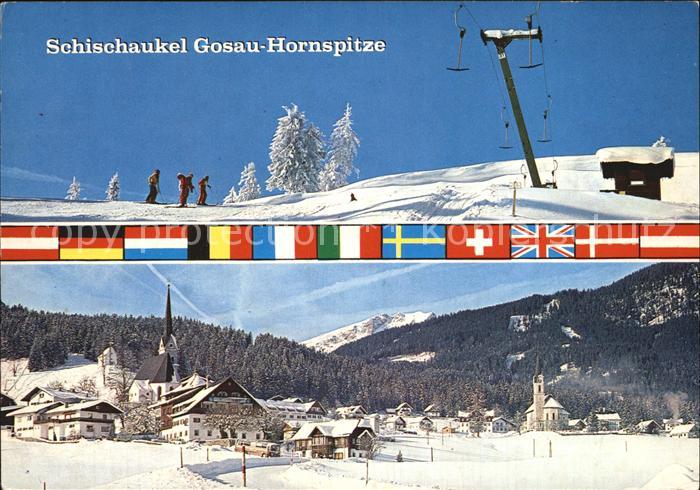 72536558 alte Postkarte Gosau Oberoesterreich Hornspitze Skischaukel Panorama postalisch gelaufen Erhaltung siehe scans [WerneD78 kt117box] KatCode: 11390315040706