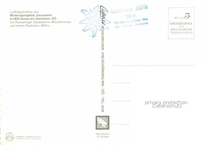 72653598 Gosau Oberoesterreich Wintersportplatz Zwieselalm Schiparadies Dachsteingebirge Fliegeraufnahme postalisch nicht gelaufen Erhaltung siehe scans [FriedD77] KatCode: 11390315040706