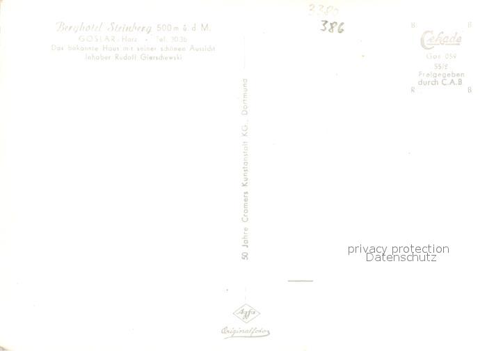 72952933 Goslar Berghotel Steinberg Fliegeraufnahme postalisch nicht gelaufen Erhaltung siehe scans [FriedD77] KatCode: 11110003153005