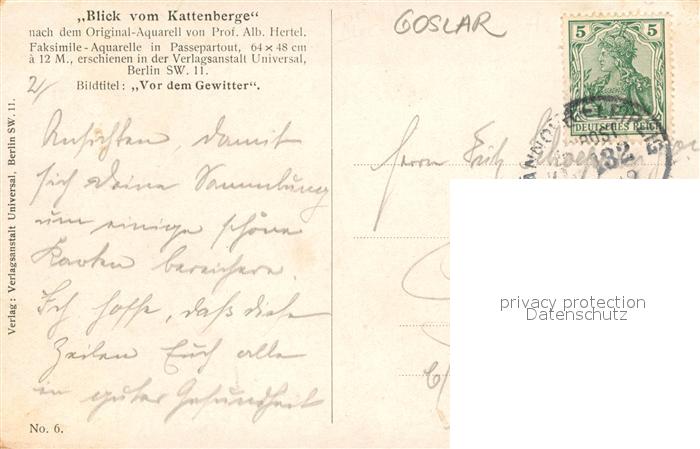 33604399 alte Postkarte Goslar Blick vom Kattenberge Aquarell Vor dem Gewitter postalisch gelaufen Bahnpost Erhaltung siehe scans [WerneD78] KatCode: 11110003153005