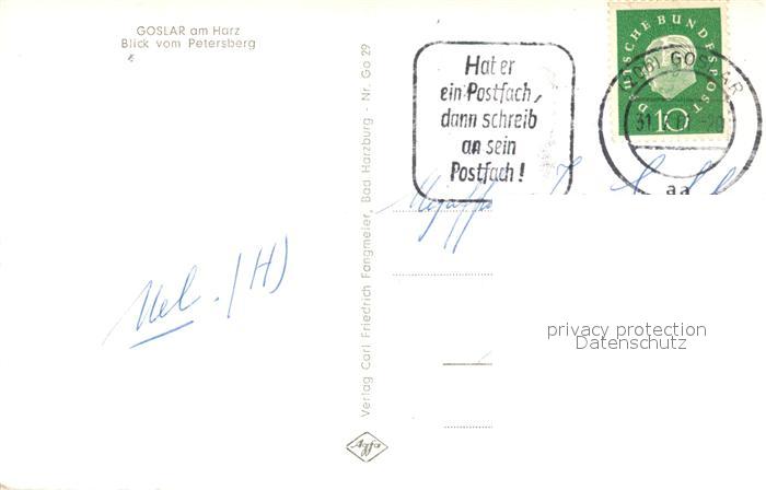 73332292 alte Postkarte Goslar Blick vom Petersberg postalisch gelaufen Erhaltung siehe scans [WerneD78] KatCode: 11110003153005