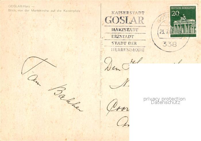 72932381 alte Postkarte Goslar Blick von der Marktkirche auf die Kaiserpfalz postalisch gelaufen Erhaltung siehe scans [WerneD78] KatCode: 11110003153005
