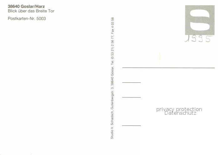 72896437 Goslar Breites Tor postalisch nicht gelaufen Erhaltung siehe scans [LiesaD40] KatCode: 11110003153005