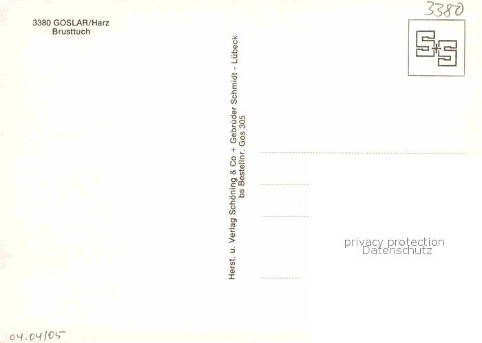 72911925 Goslar Brusttuch postalisch nicht gelaufen Erhaltung siehe scans [NatalD47] KatCode: 11110003153005