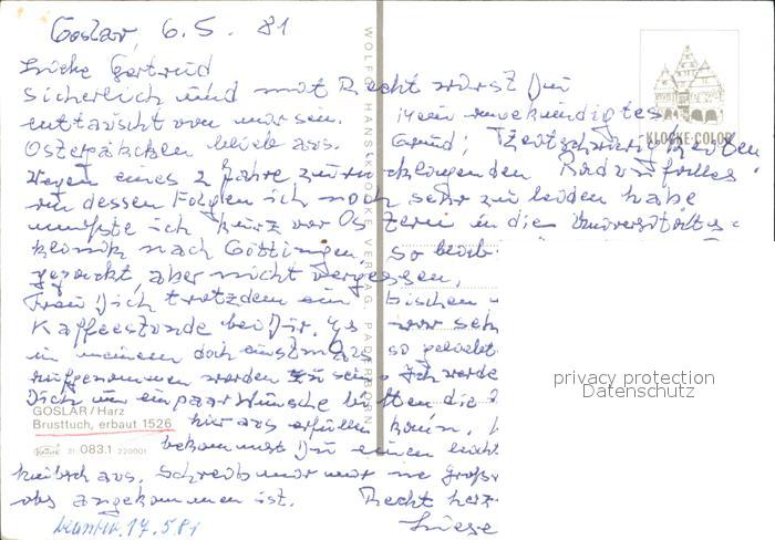 Goslar Brusttuch postalisch nicht gelaufen Erhaltung siehe scans