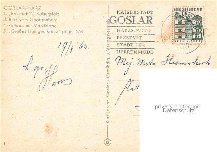 72916585 alte Postkarte Goslar Brusttuch Kaiserpfalz Rathaus Marktkirche postalisch gelaufen Erhaltung siehe scans [NatalD47] KatCode: 11110003153005