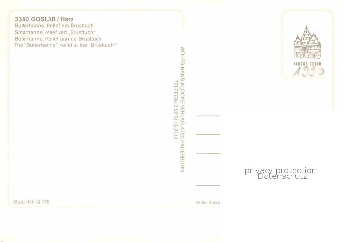 72911998 Goslar Butterhanne Relief am Brusttuch postalisch nicht gelaufen Erhaltung siehe scans [NatalD47] KatCode: 11110003153005