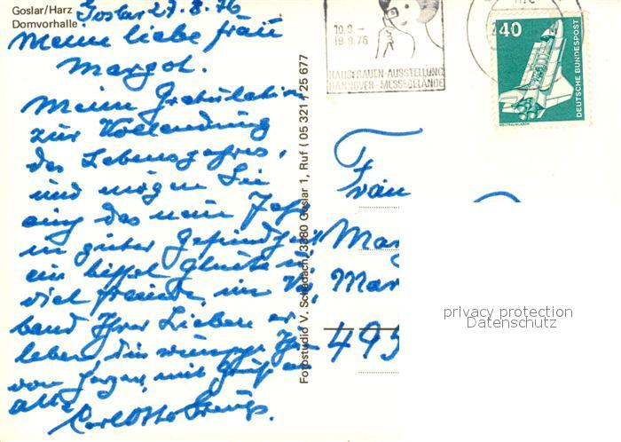 73020074 alte Postkarte Goslar Domvorhalle postalisch gelaufen Erhaltung siehe scans [WerneD78] KatCode: 11110003153005