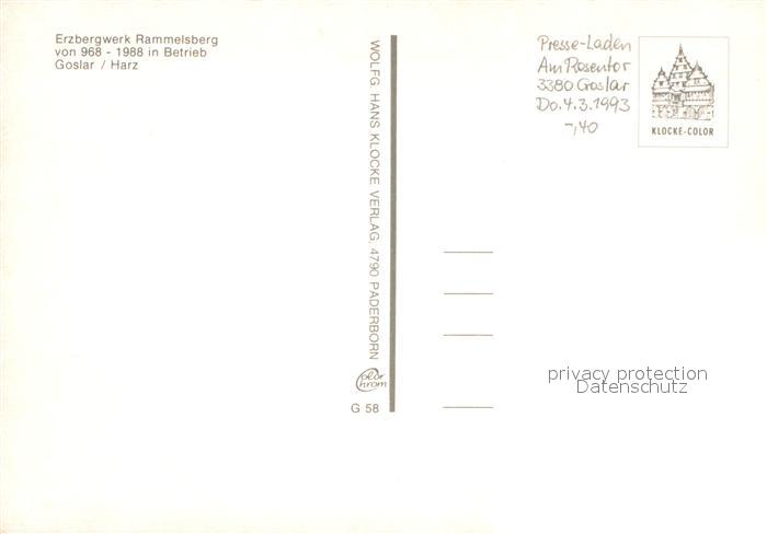 72958234 Goslar Erzbergwerk Rammelsberg postalisch nicht gelaufen Erhaltung siehe scans [FriedD77] KatCode: 11110003153005