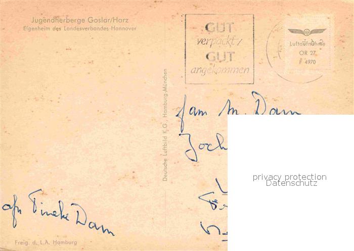 72887128 alte Postkarte Goslar Fliegeraufnahme Jugendherberge postalisch gelaufen Erhaltung siehe scans [LiesaD40] KatCode: 11110003153005