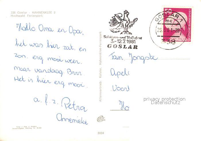 73195990 alte Postkarte Goslar Hahnenklee Fliegeraufnahme Hochwald Ferienpark postalisch gelaufen Erhaltung siehe scans [KathaD81] KatCode: 11110003153005