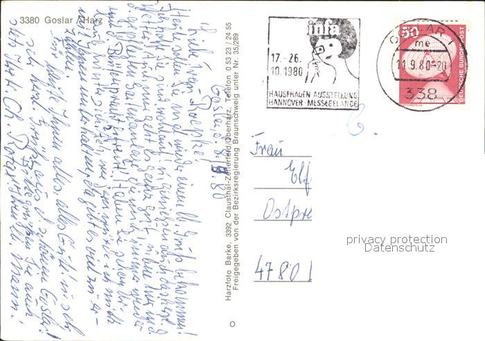 72279938 alte Postkarte GOSLAR Harz Niedersachsen Altstadt Marktplatz Kirche Fliegeraufnahme postalisch gelaufen Erhaltung siehe scans KatCode: 11110003153005