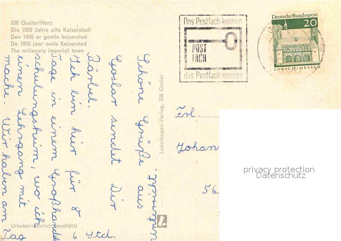 72680722 alte Postkarte GOSLAR Harz Niedersachsen Am Breiten Tor Brusttuch Marktplatz postalisch gelaufen Erhaltung siehe scans [WerneD78] KatCode: 11110003153005