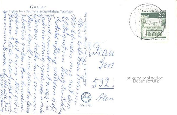 72348895 alte Postkarte GOSLAR Harz Niedersachsen Am Breiten Tor postalisch gelaufen Erhaltung siehe scans KatCode: 11110003153005