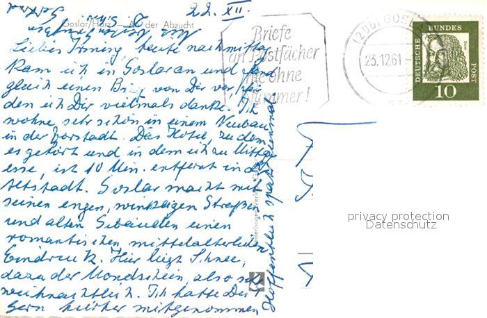 43352768 GOSLAR Harz Niedersachsen An der Abzucht Fachwerk postalisch gelaufen Erhaltung siehe scans [KathaD81] alte Postkarte Kath Katcode 11110003153005