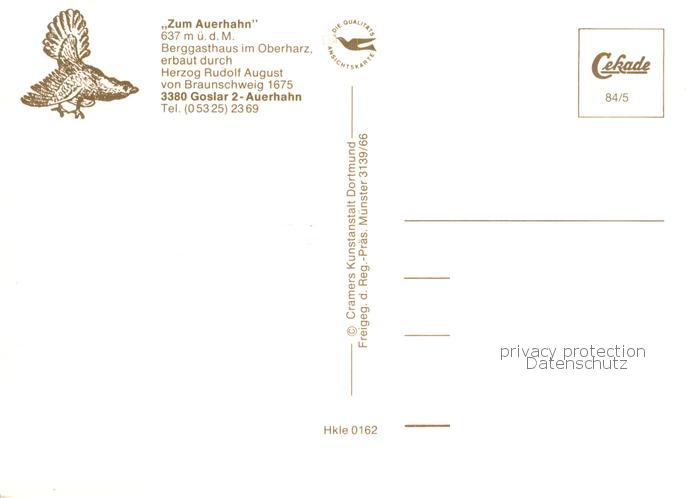 73829967 GOSLAR Harz Niedersachsen Berggasthaus Zum Auerhahn im Oberharz Fliegeraufnahme postalisch nicht gelaufen Erhaltung siehe scans [WerneD78] Wern Katcode 11110003153005