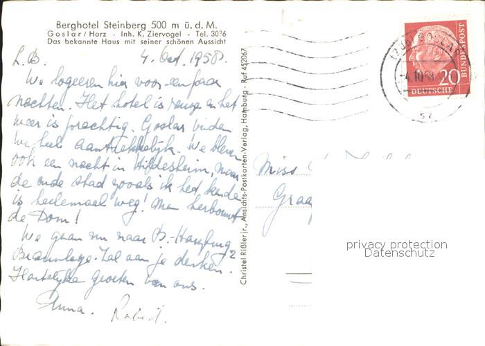 72063700 alte Postkarte GOSLAR Harz Niedersachsen Berghotel Steinberg Fliegeraufnahme postalisch gelaufen Erhaltung siehe scans KatCode: 11110003153005